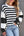 Black Stripe Striped Print Pocketed Long Sleeve Top with Slits