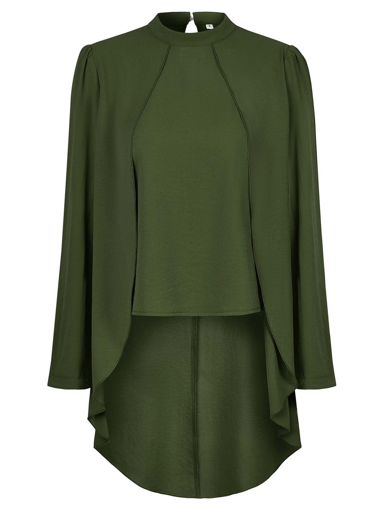 Trendy Solid Color Half Turtle Collar Long Sleeve Fake Two Piece Shirt for Women