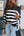 Black Stripe Striped Print Pocketed Long Sleeve Top with Slits