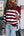 Red Striped Print Pocketed Long Sleeve Top with Slits