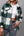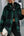 Green Plaid Stand Collar Open Zipper Pockets Fluffy Winter Outfits Coat