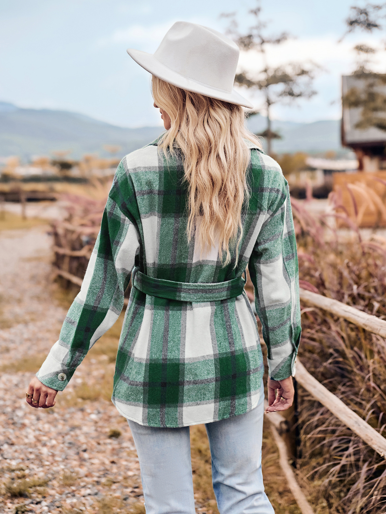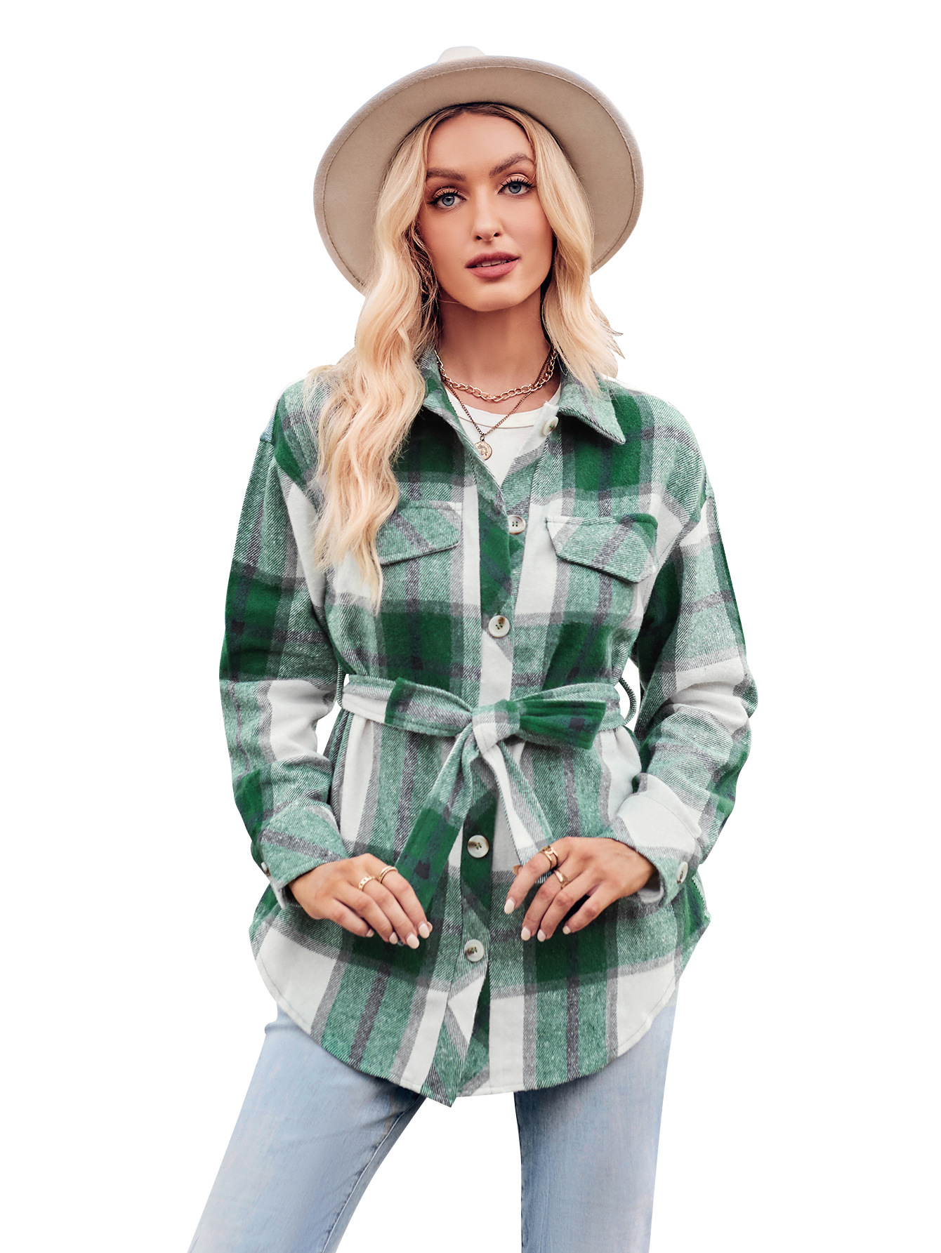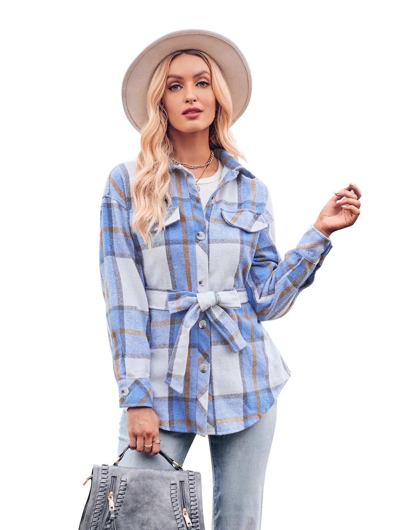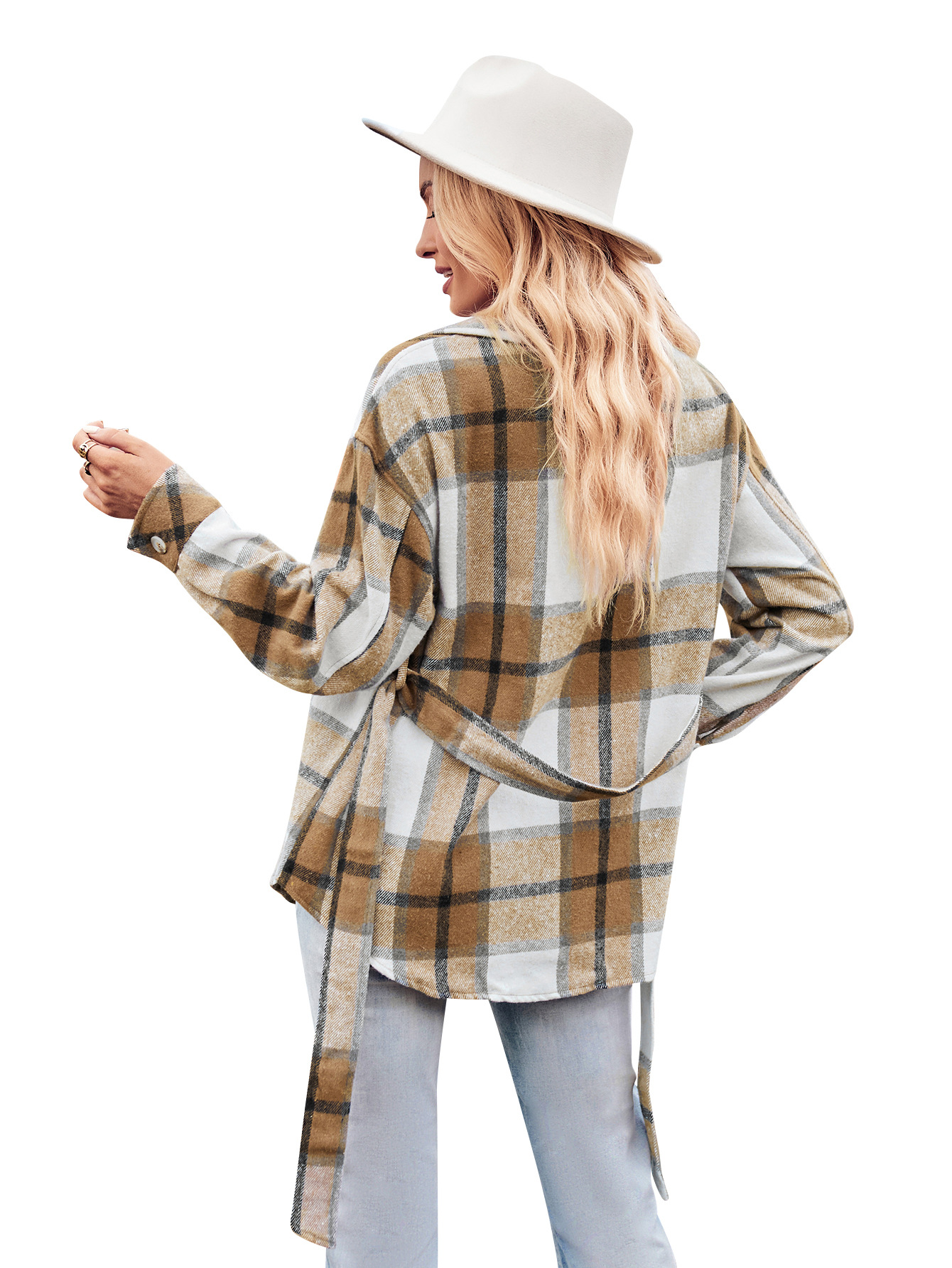 Autumn and Winter New Casual Shirt Collar Plaid Tied Waist Women's Long-sleeved Shirt Jacket
