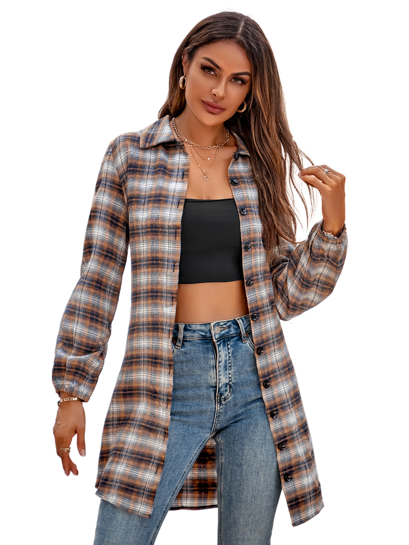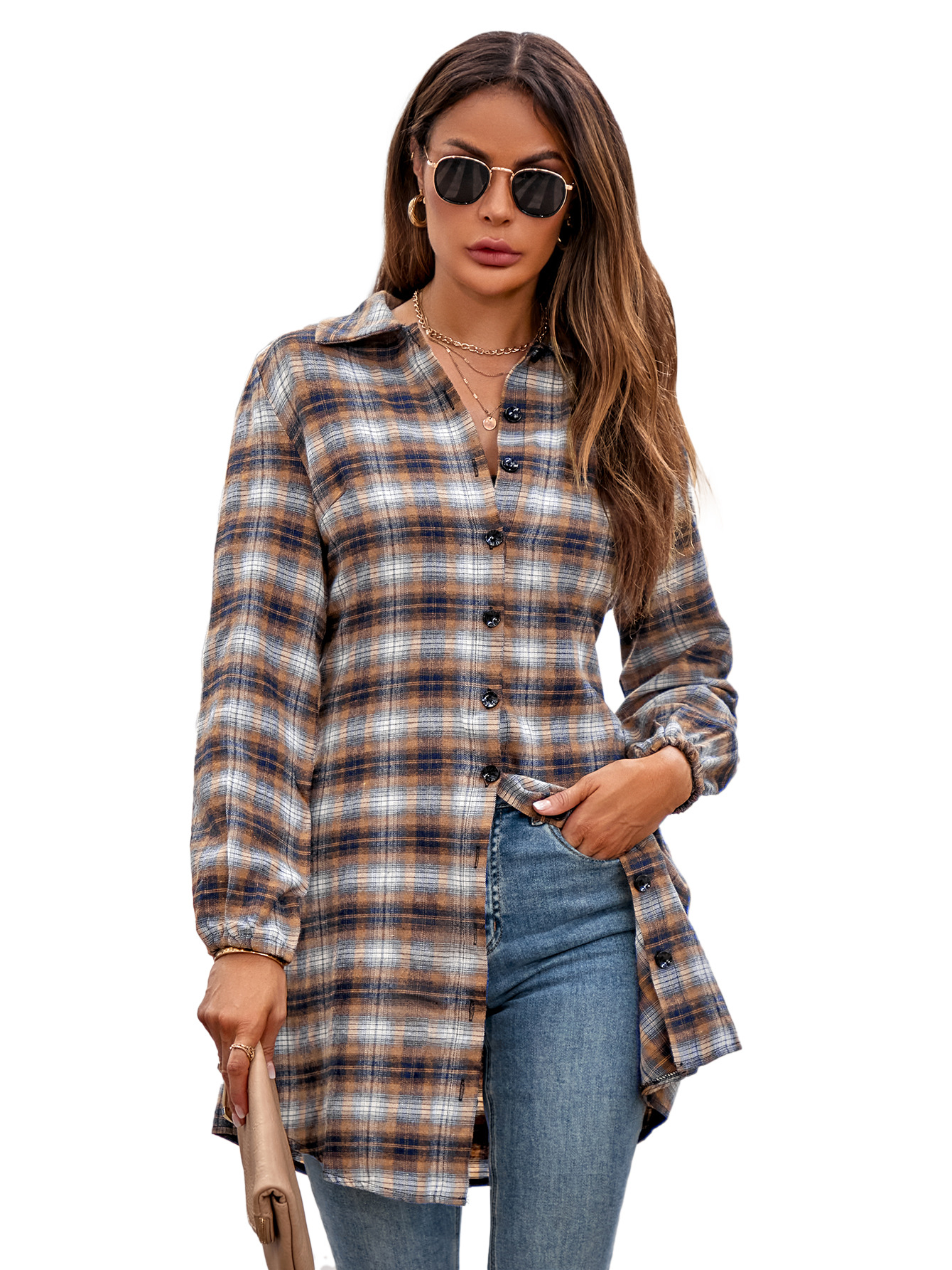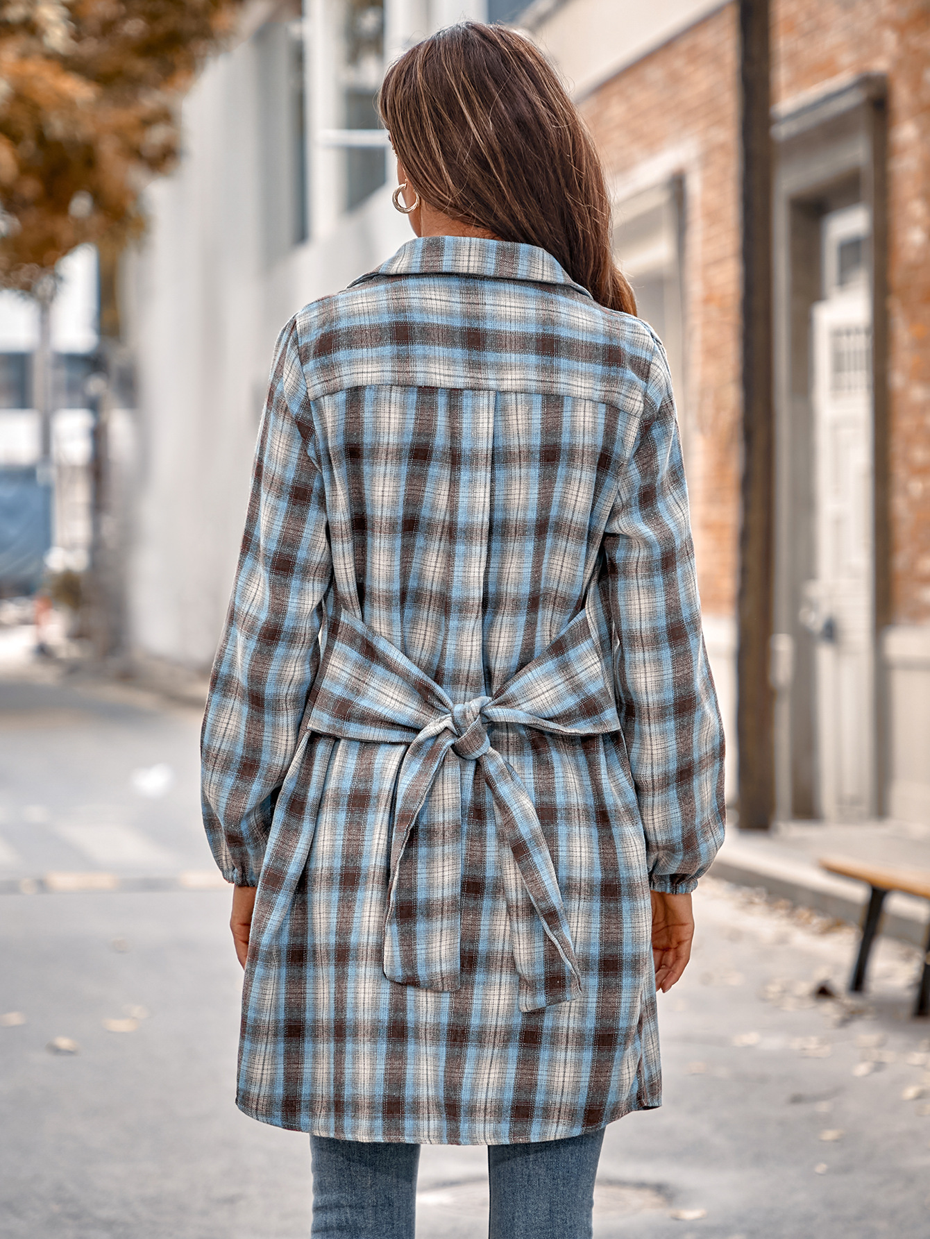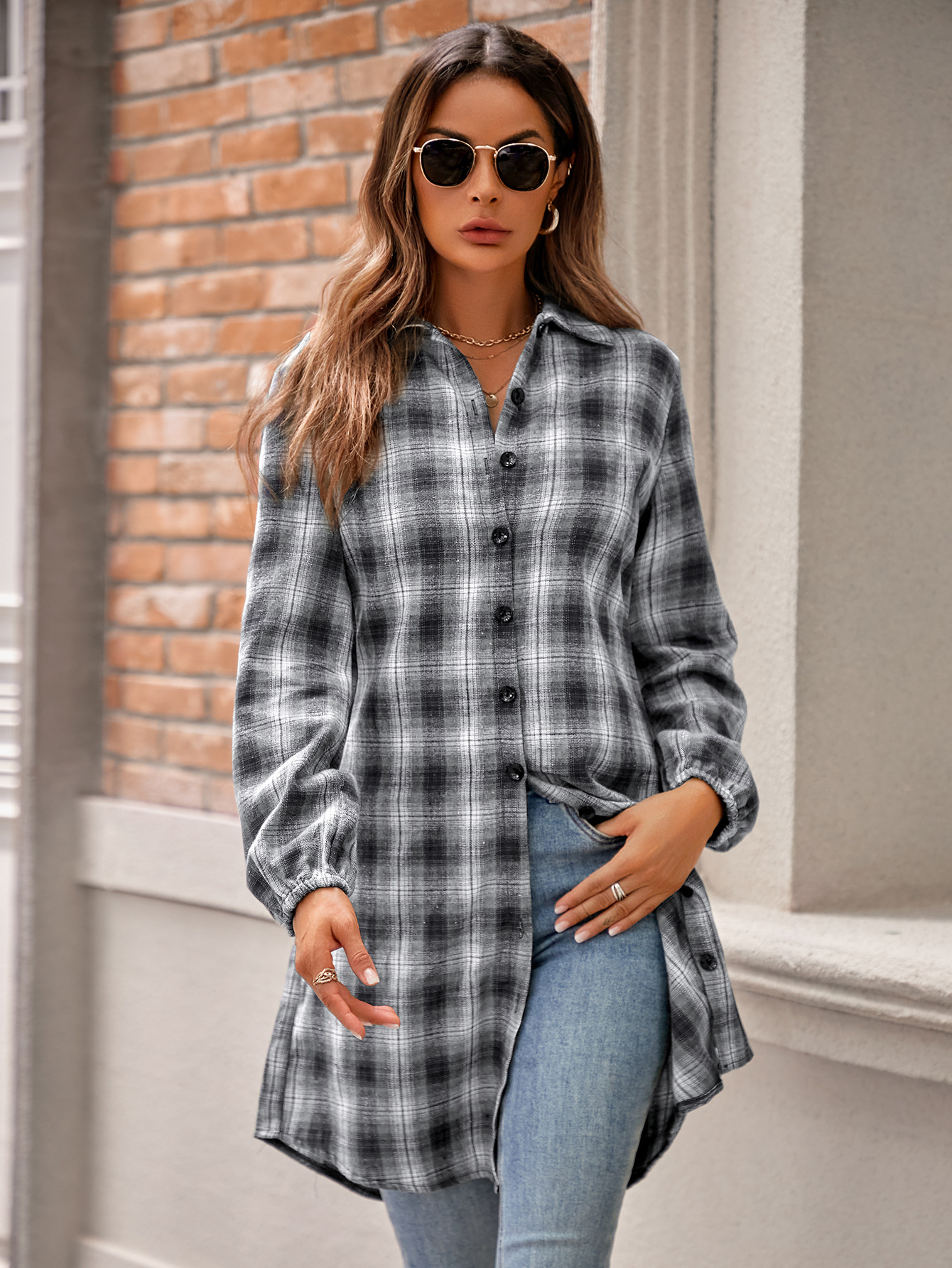Shirt Collar Plaid Single Breasted Long Sleeve Dress