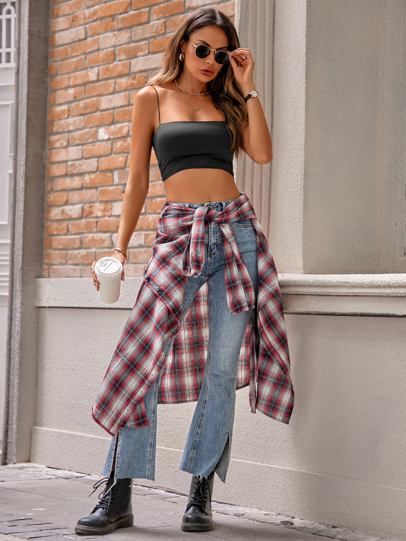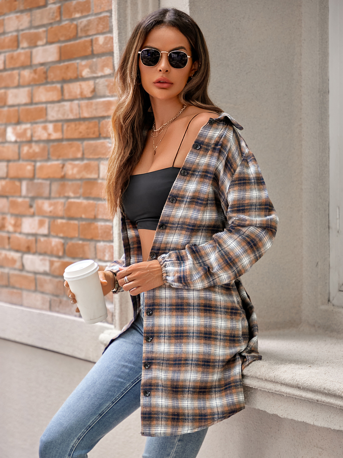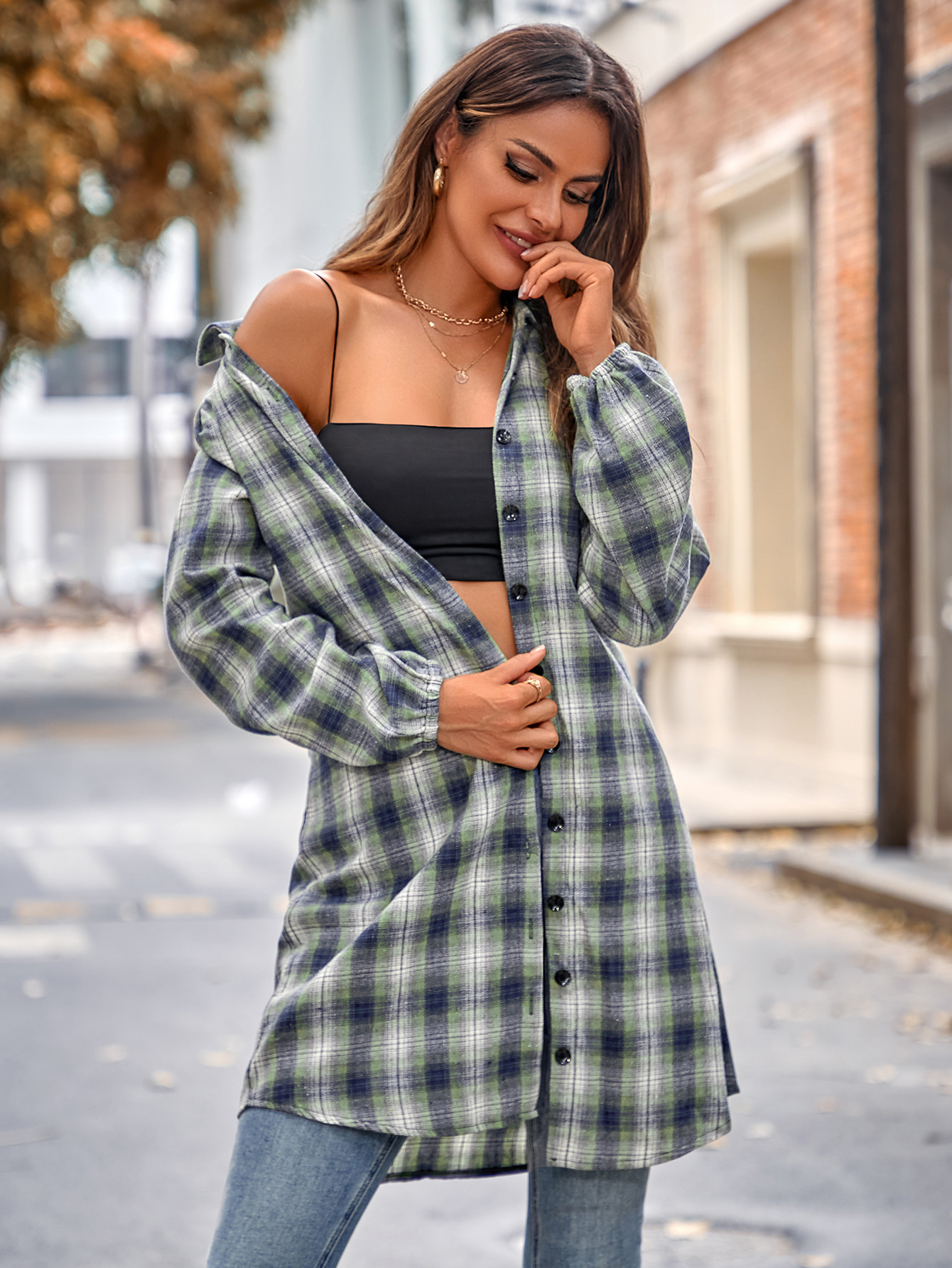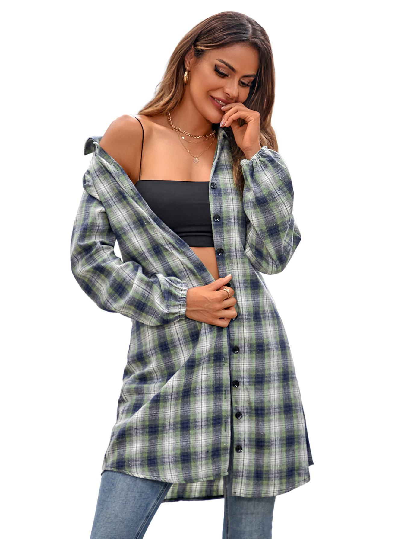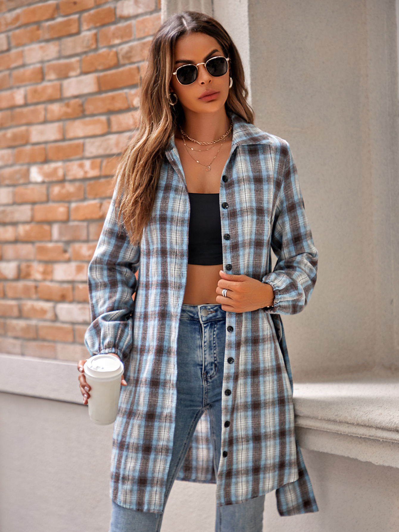 Shirt Collar Plaid Single Breasted Long Sleeve Dress